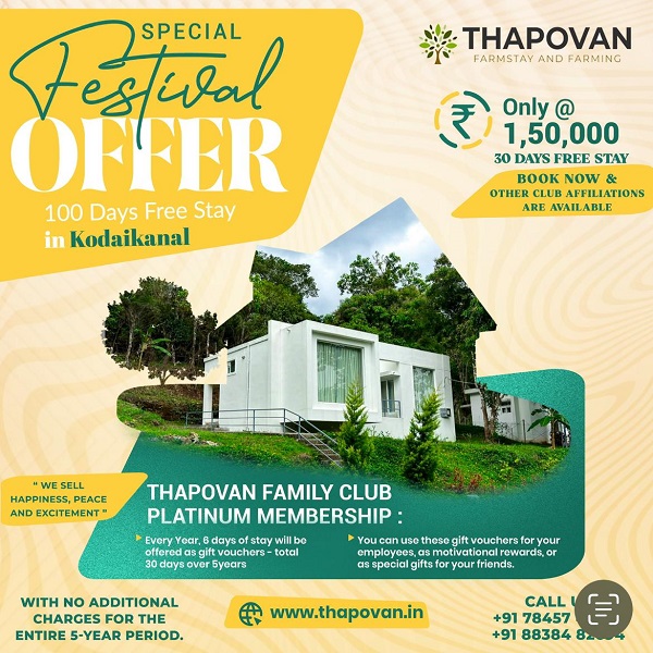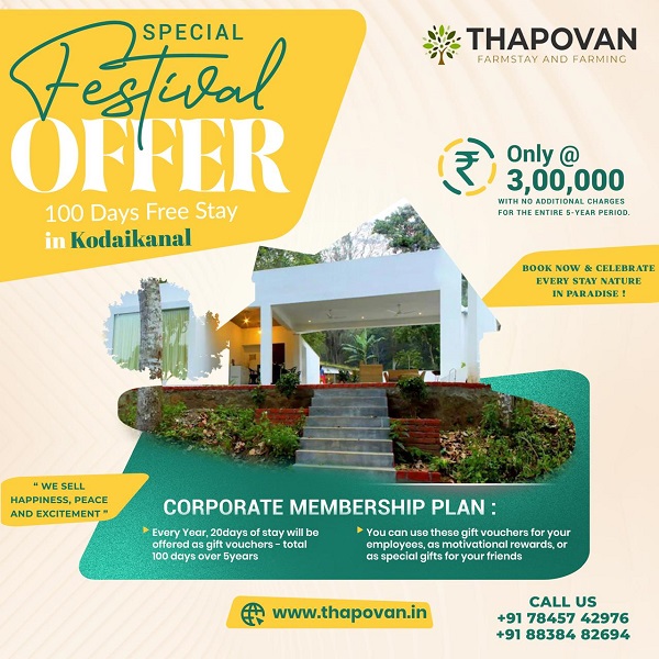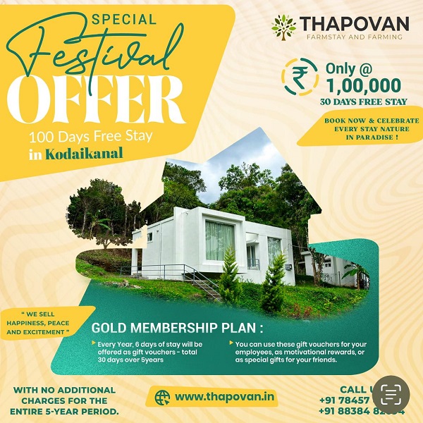 Every year, 20 days of stay will be offered as gift vouchers – Total 100 days over 5 years.