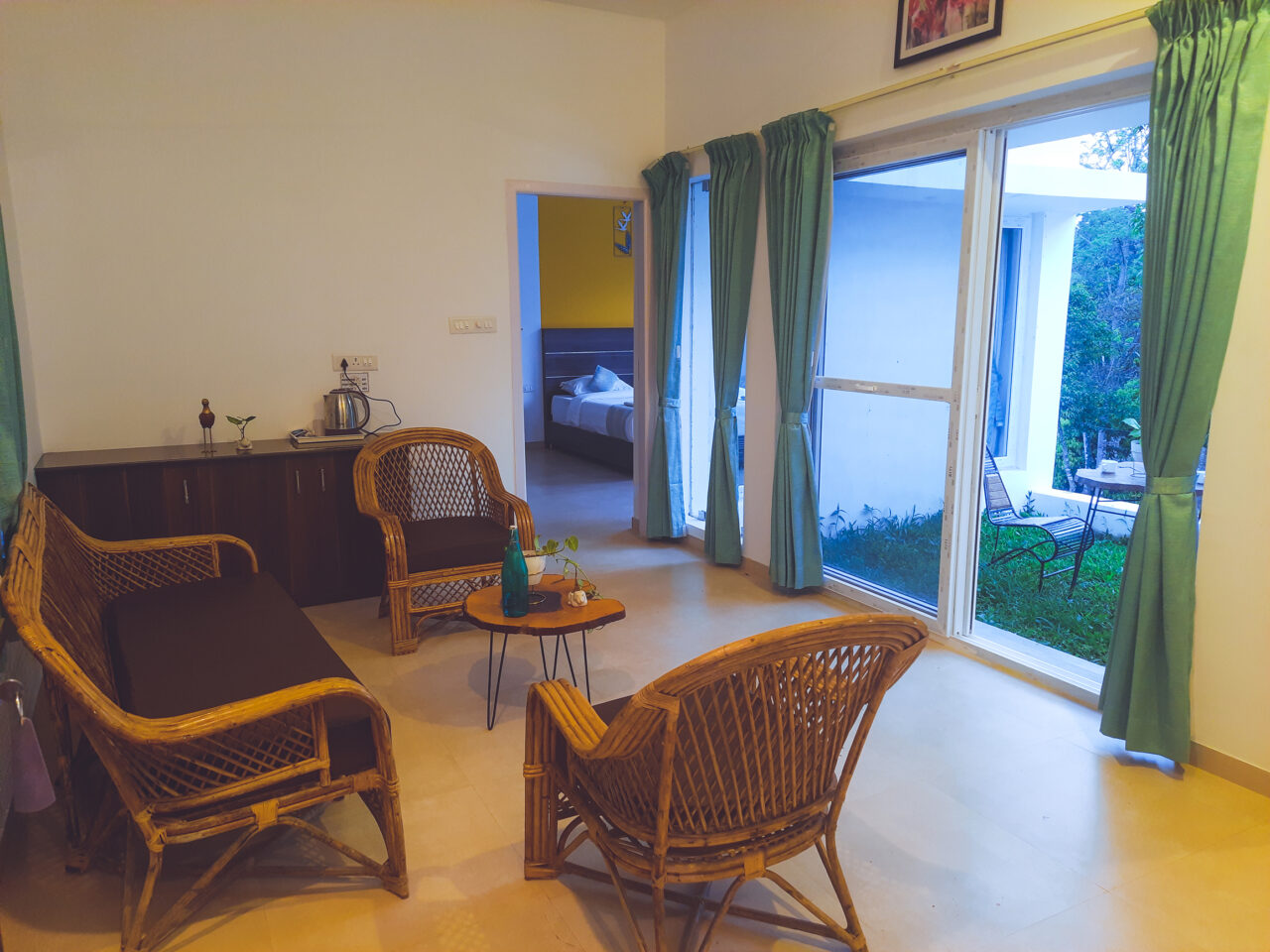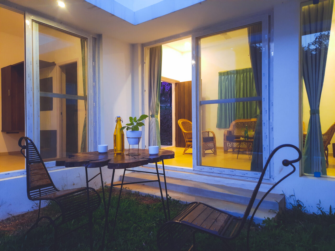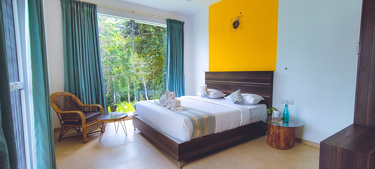 Think big, bold, and bountiful. The best villas in Kodaikanal Perched on the natural slopes and platform elevated, they offer a bird’s eye view. This comfortable Suite is an independent unit with 2 bedrooms. The suite enjoys a panoramic view of the mountains. Our Premium Villa in Thapovan is spread out to a spacious 1050 square feet and is fully loaded, with the modern traveler’s needs in mind. Each room is tastefully furnished, with comfortable spaces. This private villa in Kodaikanal has a large glazed window opening that lets you gaze at the mountains and bring in the moonlight on your bed. The stylish bathrooms are stone-clad and beckon tired travelers in with their impressive open to sky showers. That’s if you can take your eyes off the 3-sided bay window surrounding the view of the forest. So it has a living room with an extended garden sit-out where the private barbeque sessions could happen. Attached to the living area are the two master bedrooms with queen-sized beds in each with individual attached toilets. It’s the best villas in Kodaikanal for two families to stay together. These Kodaikanal villas for rent are ready to occupy.